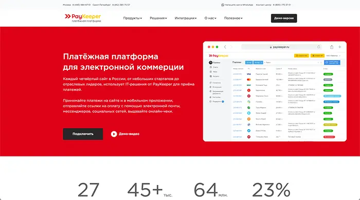 - Поддержка всех популярных способов оплаты в России и за рубежом