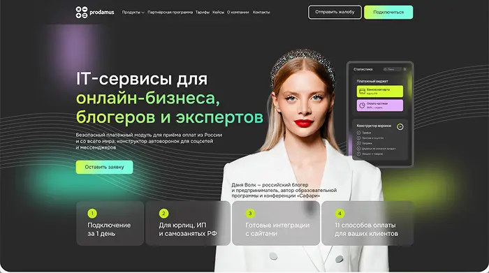 Prodamus | 3,5% | 3,5% | Онлайн-образование, блогеры, ИП, ООО | 11 способов оплаты, рассрочка, подписки |