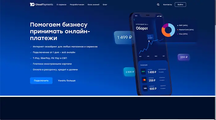 CloudPayments | 0,7% | 1,9% — 3,5% | Малому и среднему бизнесу, интернет-магазинам | API, интеграция с CMS, поддержка криптовалюты |