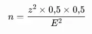 Если мы хотим получить погрешность ±5 % при максимальной неопределённости (p = 0,5), то формула размера выборки:
