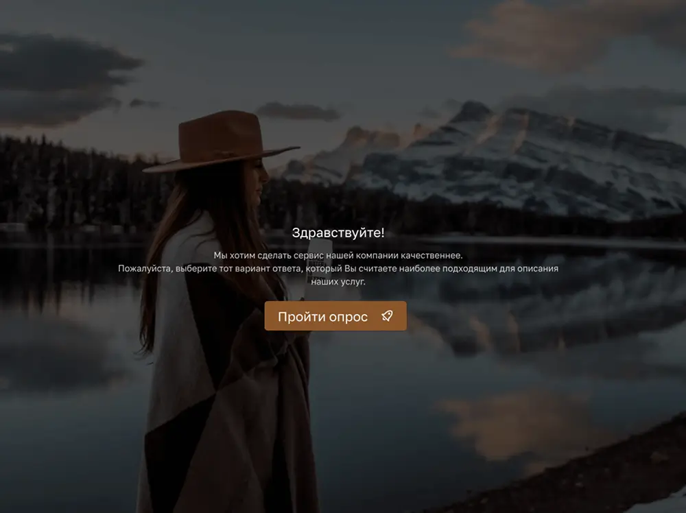 На экране приветствия может содержаться информация о целях проводимого исследования. Клиент должен понимать, для чего он проходит опрос. Плюс, здесь же можно дать и особые пояснения относительно того, как заполнять опрос и какие шаги могут вызвать трудности — в том случае, если таковые инструкции требуются.