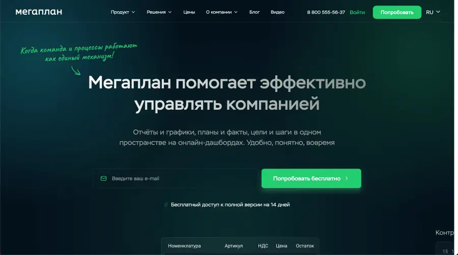 Мегаплан — это комплексная система управления бизнесом, предоставляющая отчёты для руководителей и ленту активности на одном дашборде. Она объединяет в себе CRM-систему, управление проектами и бизнес-аналитику.