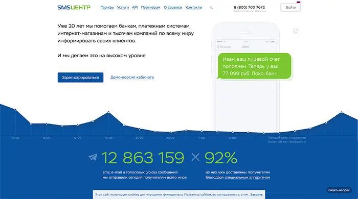 Стоимость одного SMS — от 0,8 рубля в зависимости от количества отправленных сообщений в месяц.