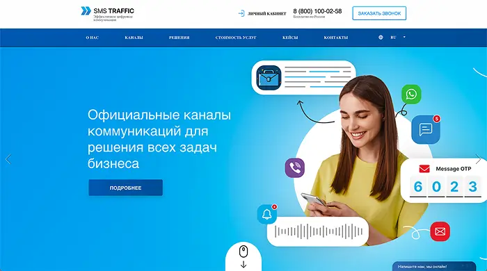 Сервис с возможностью авторизации пользователей через SMS, OTP Call, мобильный ID, Callback, а также голосовые команды и ключевые фразы. Здесь можно настроить доставку кодов клиентам через ВК, «Одноклассники», Viber и WhatsApp, а также получить юридическую консультацию по SMS-рассылкам.