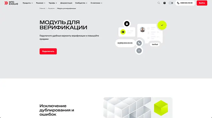 Платформа для проведения верификации пользователей через собственный SMS API. Сервис предлагает подключить городские и федеральные номера 8-800, а также IP-телефонию. Кроме того, в МТС Exolve есть ВАТС и голосовые боты.