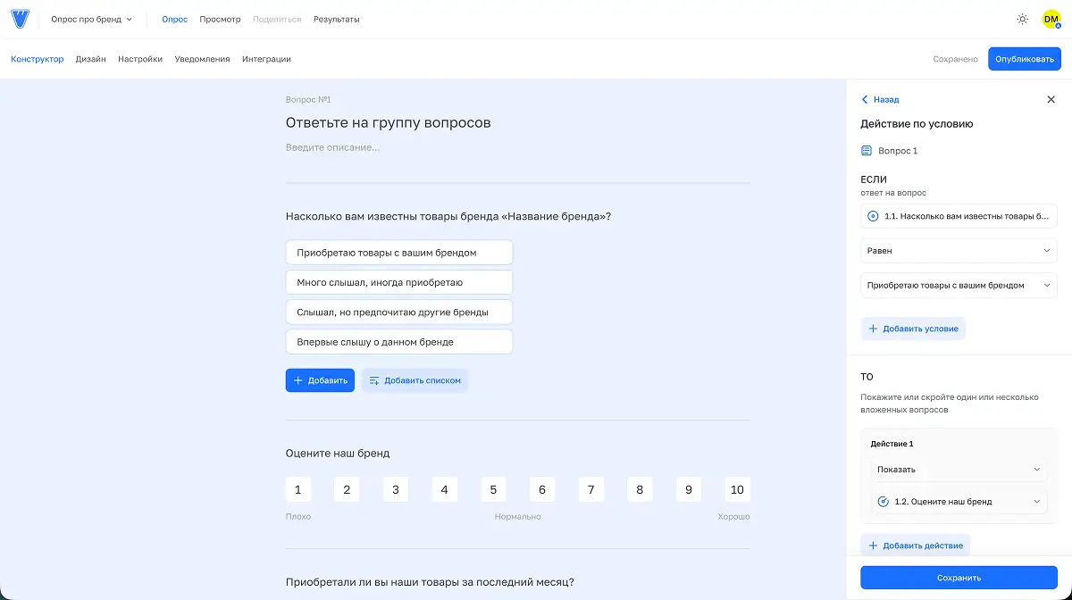 Это значит, можно смело экспериментировать с логикой и структурой: если что-то пошло не так, легко вернуться назад. Не нужно вручную копировать опрос «на всякий случай» перед правками.